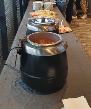 Het eten, verschillende soorten soep, salades, stokbrood en saté verzorgd door Lia Boomsma smaakte uitstekend en ondertussen werd er nog gezellig nagepraat over de bootreis en zijn ook andere gesprekken gevoerd.